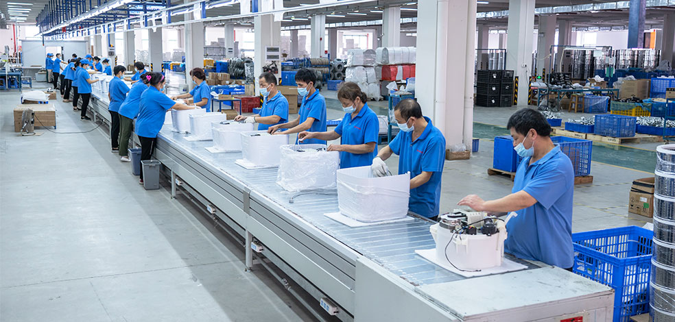 10萬㎡大型生產(chǎn)基地,26臺注塑機,1條噴涂機器人涂裝生產(chǎn)線,4條機器人沖壓自動化生產(chǎn)線和3條組裝線 ,月產(chǎn)量高達(dá)50000臺